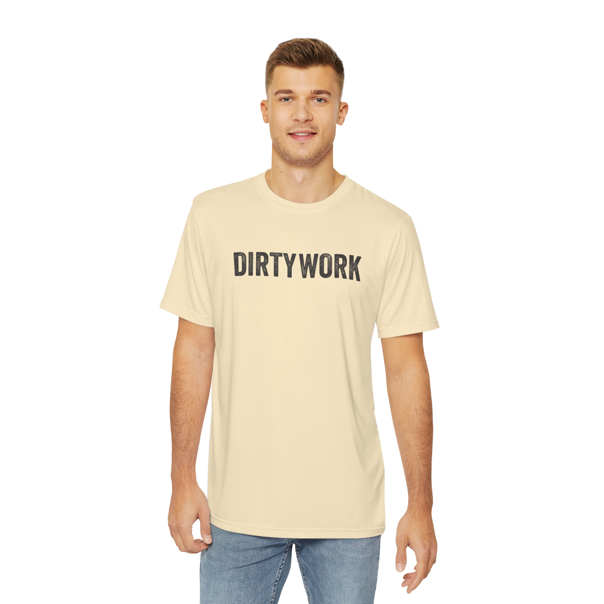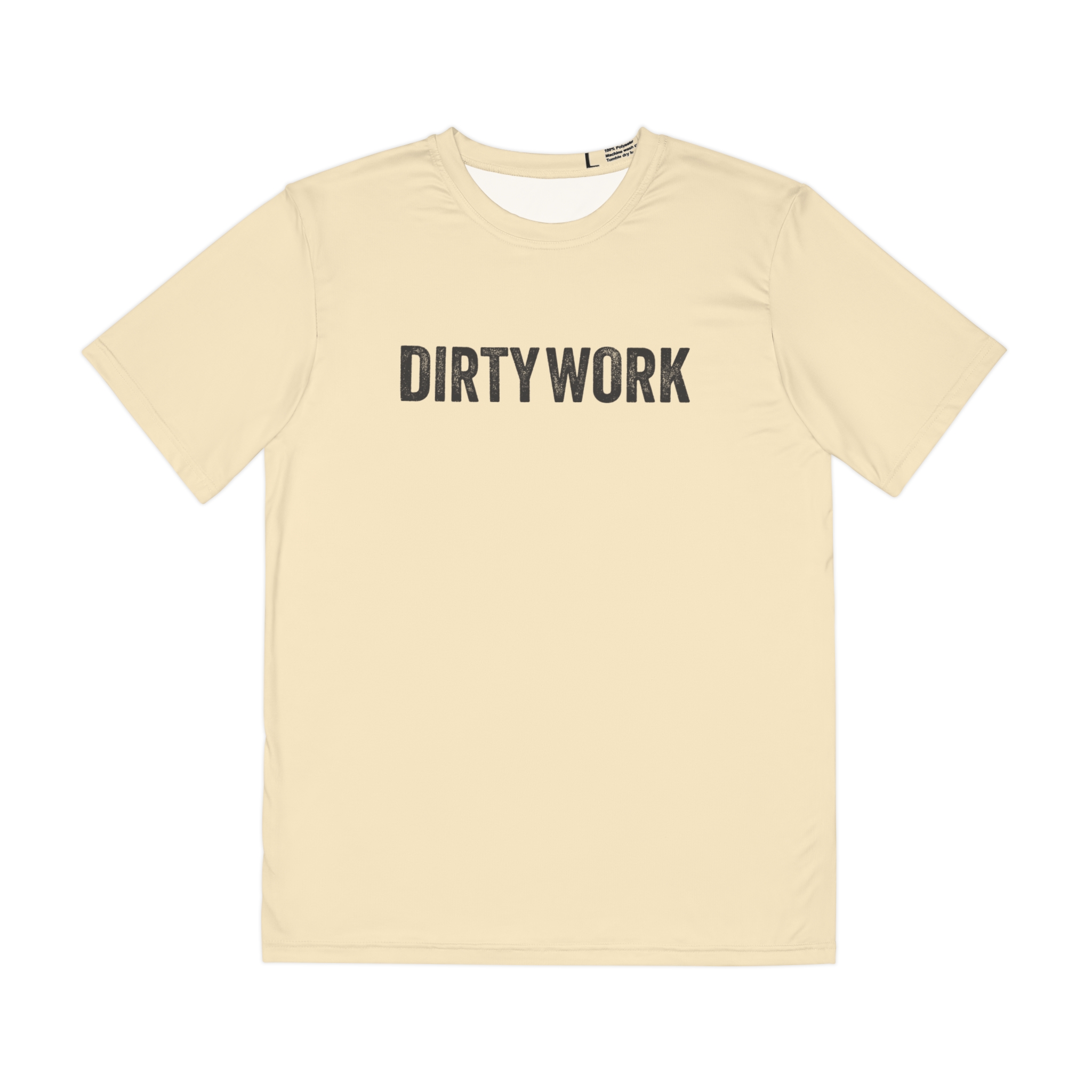 DIRTY WORK Performance Tee was built for heat, hustle, and hard days. Made from 100% lightweight brushed polyester, this moisture-wicking shirt keeps you cool and dry whether you’re on the jobsite, in the gym, or off the clock. With a bold chest print and clean finish, it’s made to grind and made to stand out.